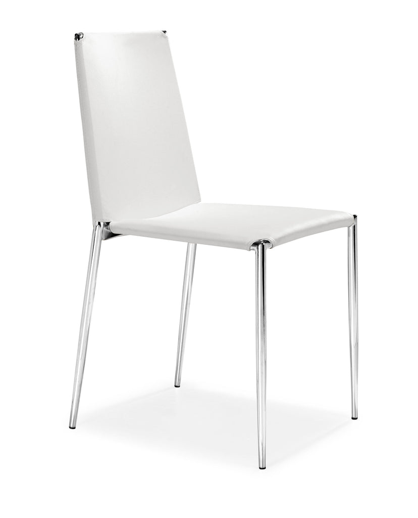 Clean lines and shape, this chair works well in the office or in the dining room. The Alex chair stacks and is made with a soft leatherette seat and back with a chromed steel tube frame with rubber feet.