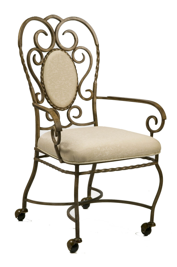 Astoria Metal Arm Chair with Upholstered Back and Seat & Castors (Set of 2)