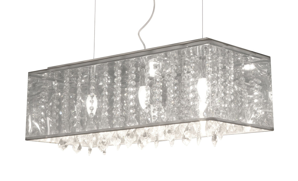 Let the Blast ceiling lamp's radiant metallic glow shine throughout any space. The lamp has a myriad of crystals, translucent metallic shade and a chrome base. It is UL approved. The height is fully adjustable.