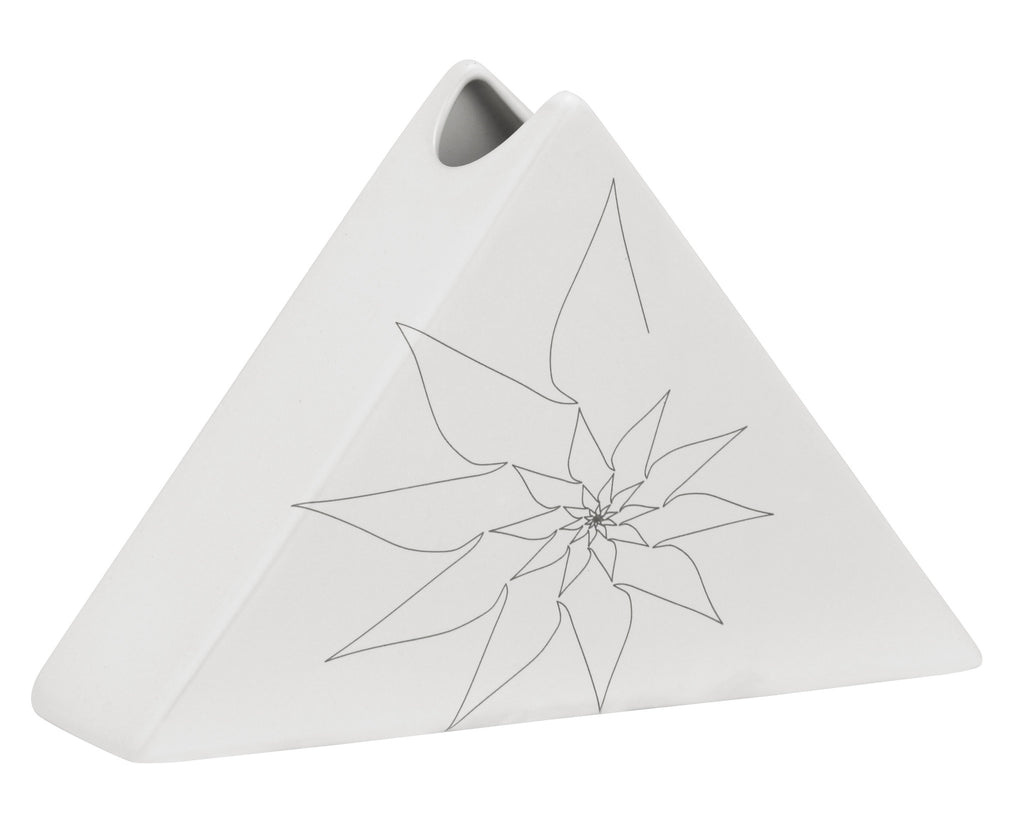 This triangular vase series is unique and will be the center of attention in any space. Ceramic with a glossy painted finish. Comes in 4 exciting colors.