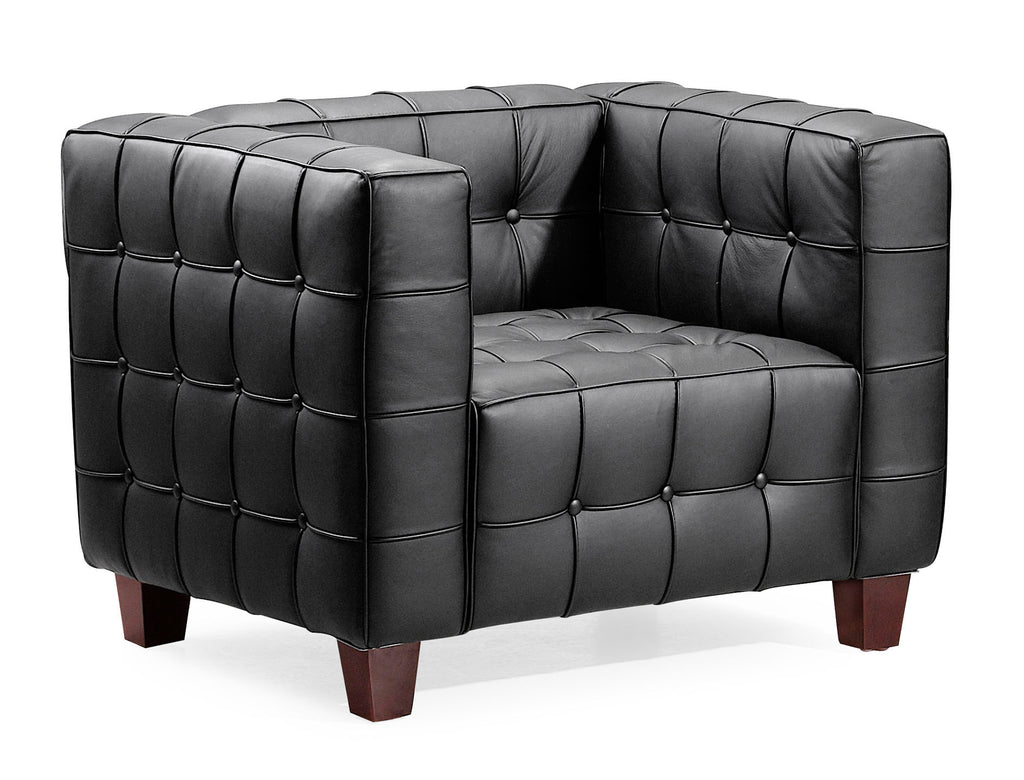 With sophisticated ribbing and button pattern, the appropriately named Button series has all leather seating surfaces with leatherette back and sides and solid wood legs.