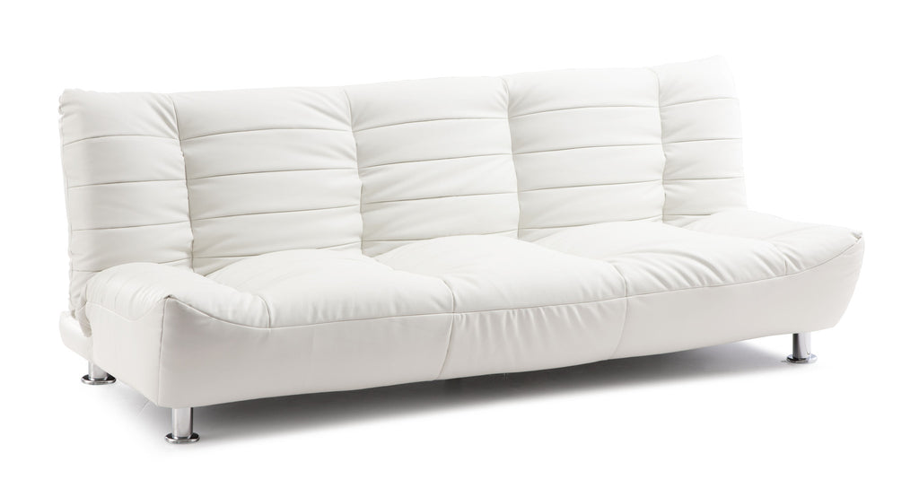 An artistic form of comfort, the Carnival sleeper is wrapped in soft leatherette with chrome legs. Comfortably fits two people. Comes in espresso, white and black.