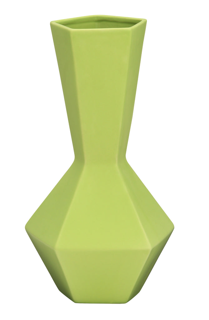 Geometric in style, these vases have sharp angles in perfect harmony. From tall to short, wide to skinny, let their chic style add dimension to any room. Ceramic painted in many glossy colors.