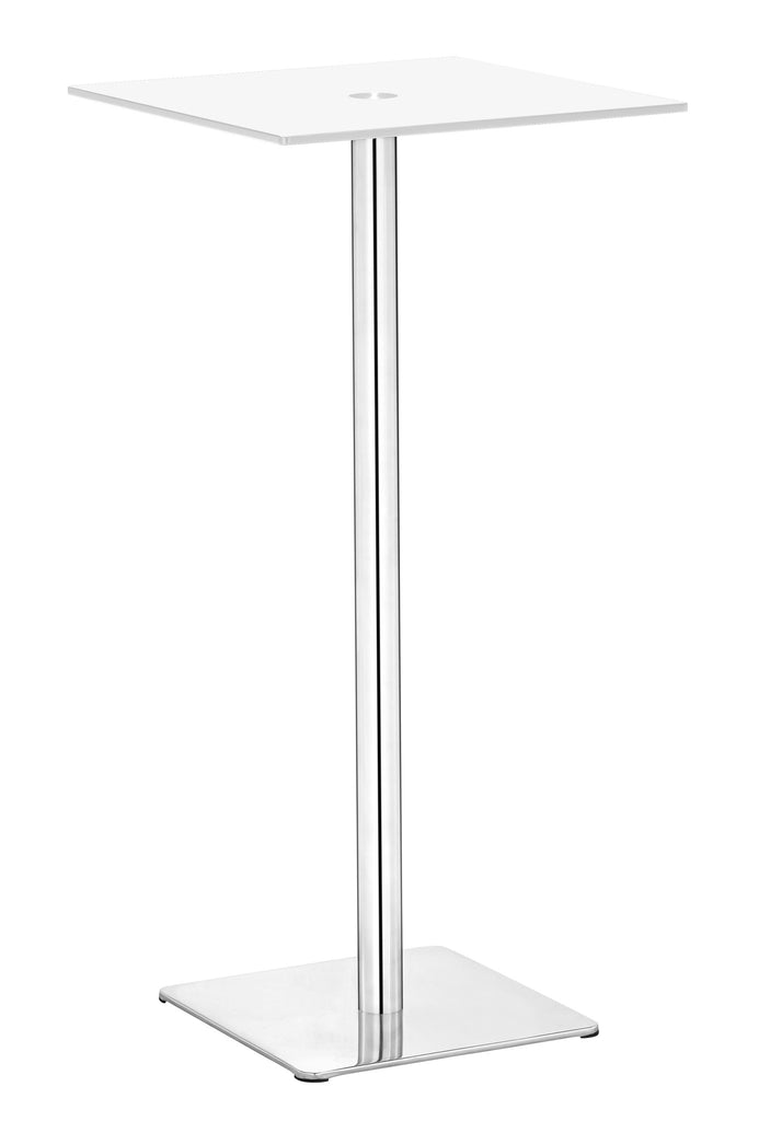 The understated elegance of the Dimensional table series makes it suitable for any application. Made from a tempered painted glass top and a chrome and stainless steel base.