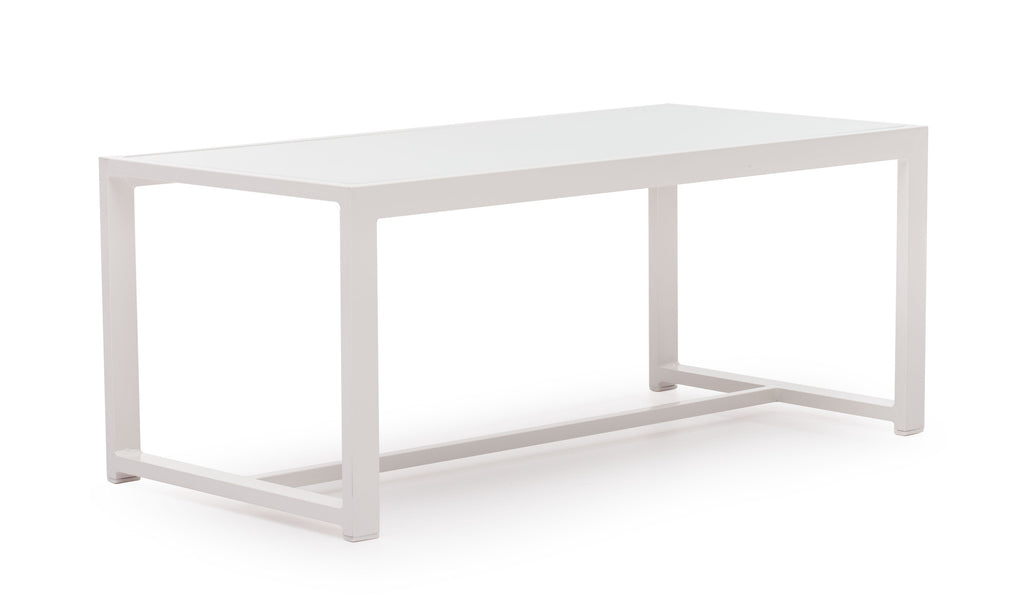 The Golden Beach coffee table, though minimalistic, is the perfect table to gather a group of friends for drinks and catching up. The frame is 100% aluminum and the glass is frosted, tempered glass.