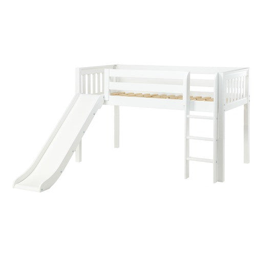 Marvelous Slat Twin Low Loft Bed with Straight Ladder and Slide by Maxtrix Kids | 101-00 / 1320-001