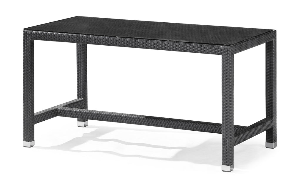 The Myrtle table set is the ultimate outdoor entertainment set, perfect for a large patio or backyard; it consists of a table, a long double bench, and single stool. The frames are constructed from epoxy coated aluminum and the weave from UV treated polypropylene for maximum resistance against the elements. The Table has a 10 mm thick clear tempered glass top and the Stool cushions are made with a UV and moisture resistant washable polyester fabric. The seat cushions are removable for convenience and option. The table seats six comfortably with two benches and two stools. Complete your backyard barbeque with this fun set!