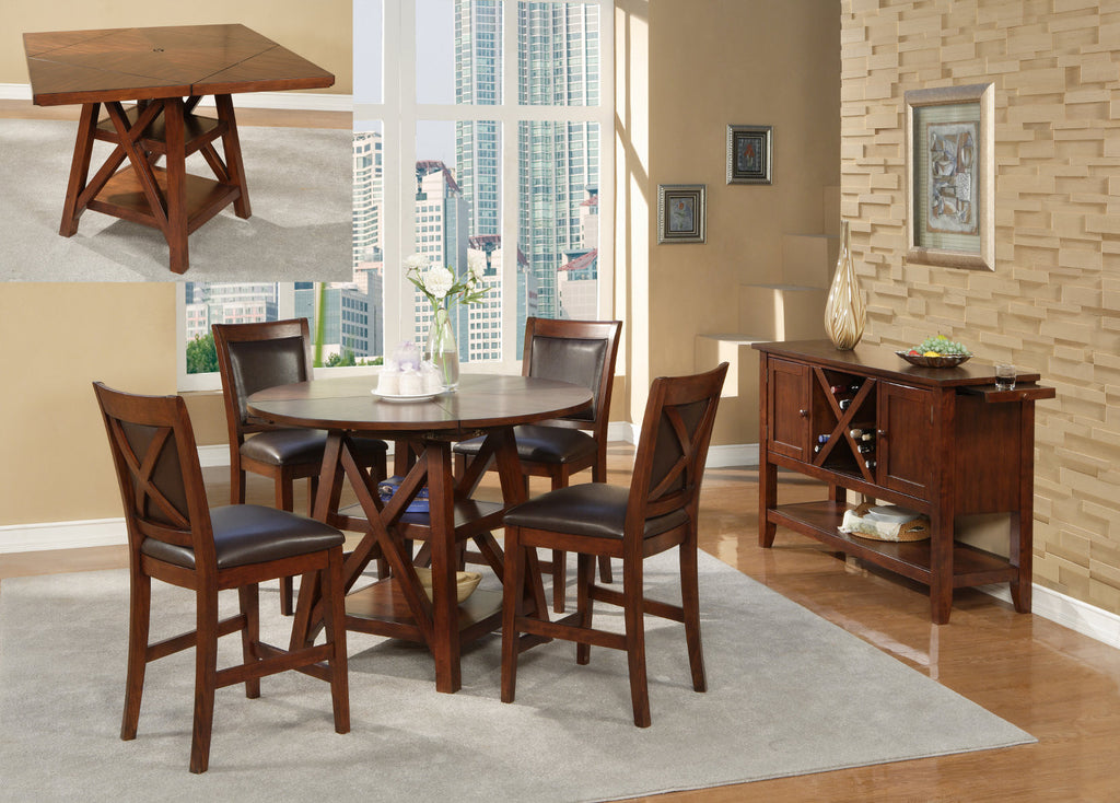 OBERLIN FOLDING TOP TRANSFORMING ROUND TO SQUARE COUNTER HEIGHT TABLE