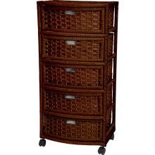 Oriental Furniture Features: -Chest of drawers. -Mocha finish. -Natural fibre construction. -Practical and portable five drawer chest is part of a collection of well crafted small chests - shelf units - hampers - and room dividers. -With a look and feel similar to rattan - they're built from beautifully colored woven spun plant fiber cord. -Structurally strong furnishings that are amazingly lightweight. -Structurally strong and remarkably light weight. -Beautiful - practical storage on swivel casters. -Offers extra height and extra storage.