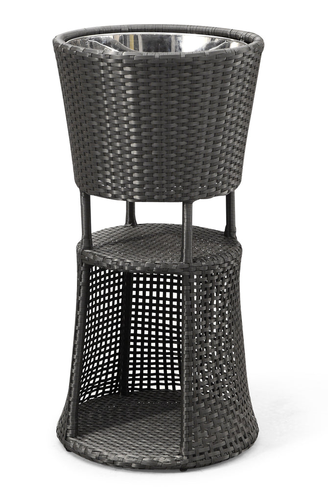 The South Beach beverage tub is a fun and functional piece to any outdoor entertainment space. With a ice tub and shelf levels, this piece is a must for all parties. The frame is constructed from epoxy coated aluminum and the weave from UV treated polypropylene for maximum resistance against the elements.