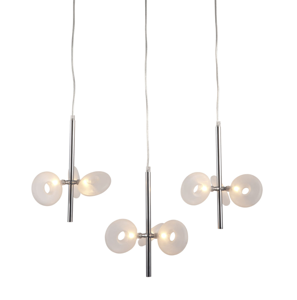 Like glowing halos in synchronous orbit around each other, the Twinkler ceiling lamp's frosted rings will illuminate any space. It comes with nine 10W halogen bulbs and is UL approved.