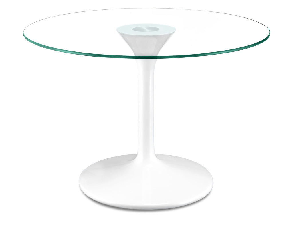 With its beautiful tulip shaped base, the Universe diningtable looks like an object lesson in modernism. The base is a sculpted fiberglass that is coated in pure white with a tempered glass top attached with a fused aluminum plate.